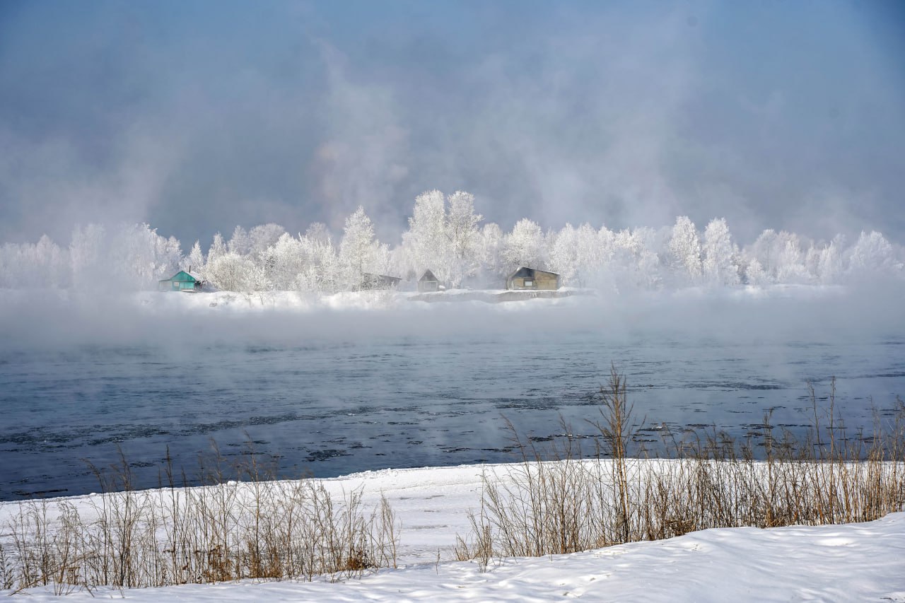 Красавица Ангара тоже почувствовала холод и укуталась в туман.