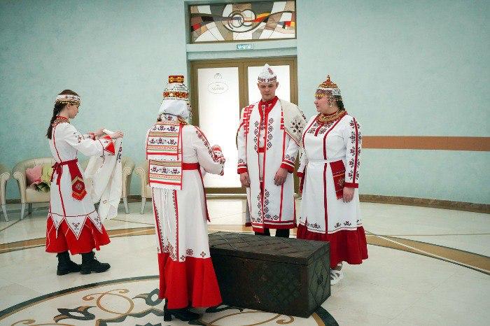 Многие молодожены в феврале выбрали для регистрации брака красивую дату – 26.02.26. Во Дворце бракосочетания Иркутска поженились около 80 пар. На фоне остальных выгодно выделялись София Бузикова и Денис Шевченко из Жигалово. Жених и невеста, а также их родственники прибыли к торжественной регистрации в чувашских национальных костюмах.