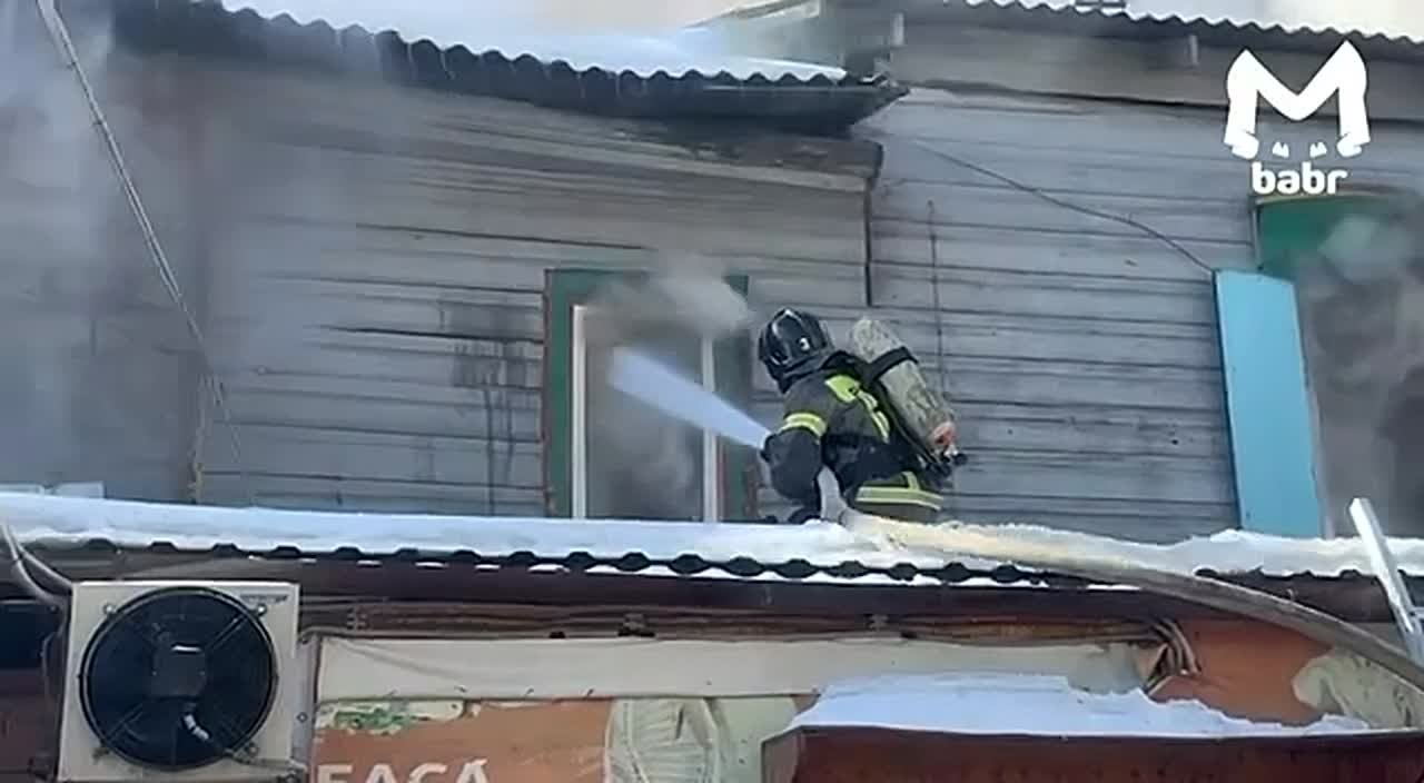 Двухэтажный дом горит на улице Софьи Перовской в Иркутске. Тушением занимаются восемь человек и две единицы техники.