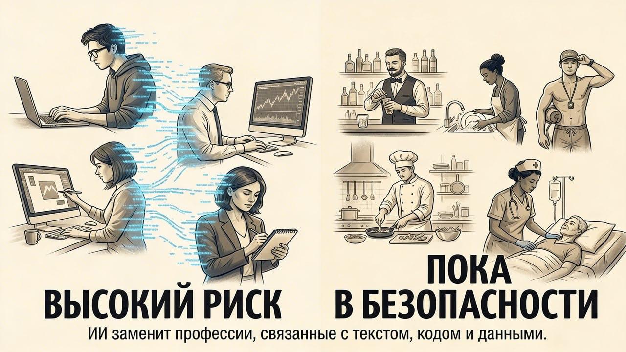 Anthropic проанализировали рынок труда и выделили группы риска. Если ваша работа связана с текстом, кодом или данными — у нас для вас плохие новости.