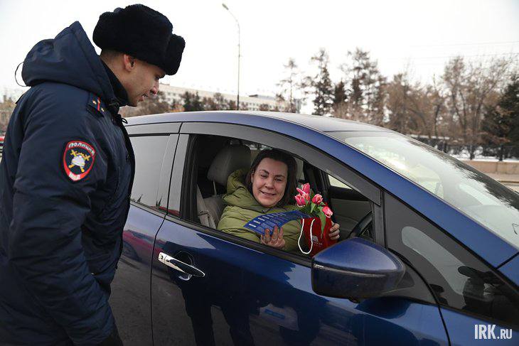 В преддверии Международного женского дня в центре Иркутска прошла традиционная праздничная акция от сотрудников ГИБДД.