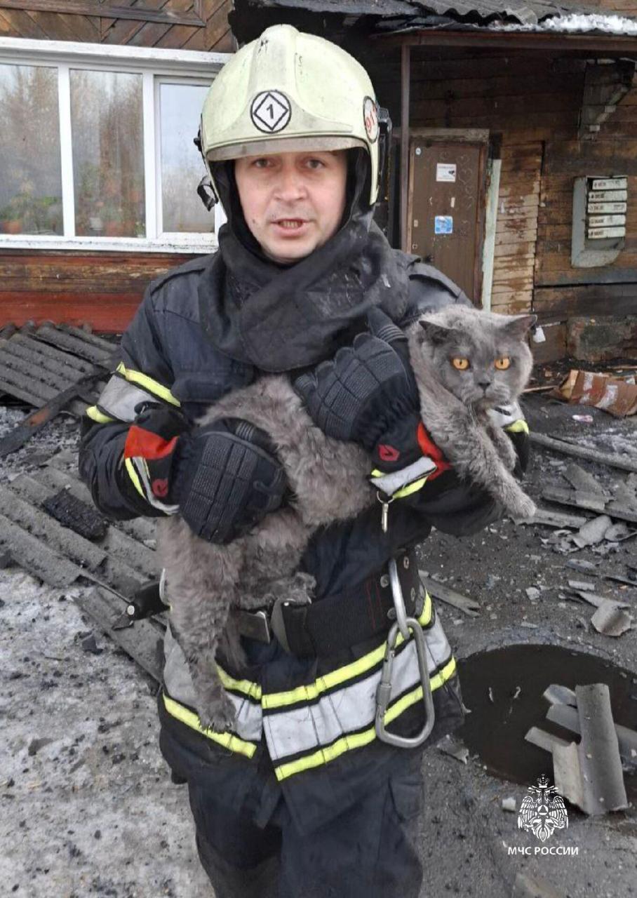 -Хозяина в задымленный дом, где уже произошло обрушение потолочных балок, мы пустить не могли. Во время проливки конструкций нам удалось зайти в квартиру. У двери нас встретила черная кошка, как будто дожидалась. А вот второго котика пришлось поискать. Мужчина предупредил, что его «британец» обычно прячется под душевой кабиной, но его там не оказалось. В итоге нашли за диваном. Он, как испуганный ребенок, забился в самый дальний угол. Когтями впился в обивку. Думали, выносить придется вместе с мебелью, никак не получалось его отцепить, – поделился старший помощник начальника дежурной смены службы пожаротушения 1 пожарно-спасательного отряда Станислав Хисматулин.