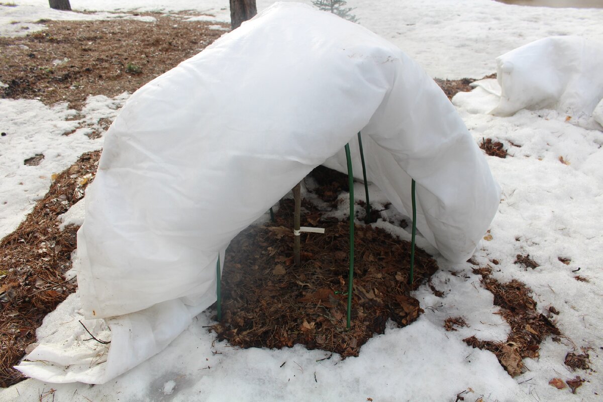 В этом году магнолии были укрыты синтепоном, оставляя небольшую дырку для проветривания. А вот магнолии Лебнера, включая сорта "Leonard Messel" и "Wildcat", зимуют без укрытия, основываясь на положительном опыте садоводов.