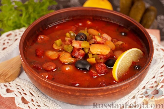 - Солянка с колбасой и ветчиной: Густой, насыщенный, с многочисленными добавками, этот суп станет настоящим спасением для тех, кто хочет быстро и вкусно поужинать.