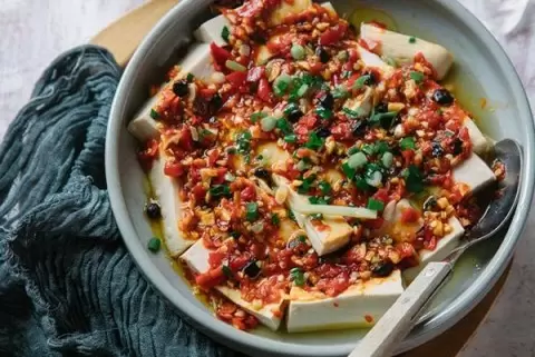Многие ошибаются, полагая, что мягкий тофу нужно чрезмерно пропитывать. В реальности, идеальное сочетание начинается с приготовления соуса: чеснок, зеленый лук, острый ферментированный перец и ферментированные черные бобы тщательно разогреваются в масле, чтобы раскрыть все ароматы. Затем этот ярый соус аккуратно выливается на поверхность тофу. Таким образом, вкусы равномерно проникают во все слои, а сам тофу остается лёгким носителем сложного гастрономического послания.