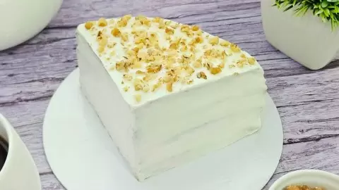 Для крема соединить мягкий творог, творожный сыр и подсластитель, взбить до получения однородной массы. Каждый корж смазать кремом, собирая торт слоями. Также украсьте верх и бока торта оставшимся кремом и отправьте в холодильник на ночь для пропитки.