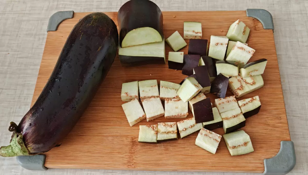 Для начала стоит тщательно вымыть баклажаны и нарезать их кубиками. Затем их следует слегка посолить и оставить постоять на 15 минут. В этот момент жидкость, которая выделится, только улучшит вкус будущего блюда. После этого помидоры нарезают на крупные дольки (меньшие можно разделить пополам) и также подготавливают.
