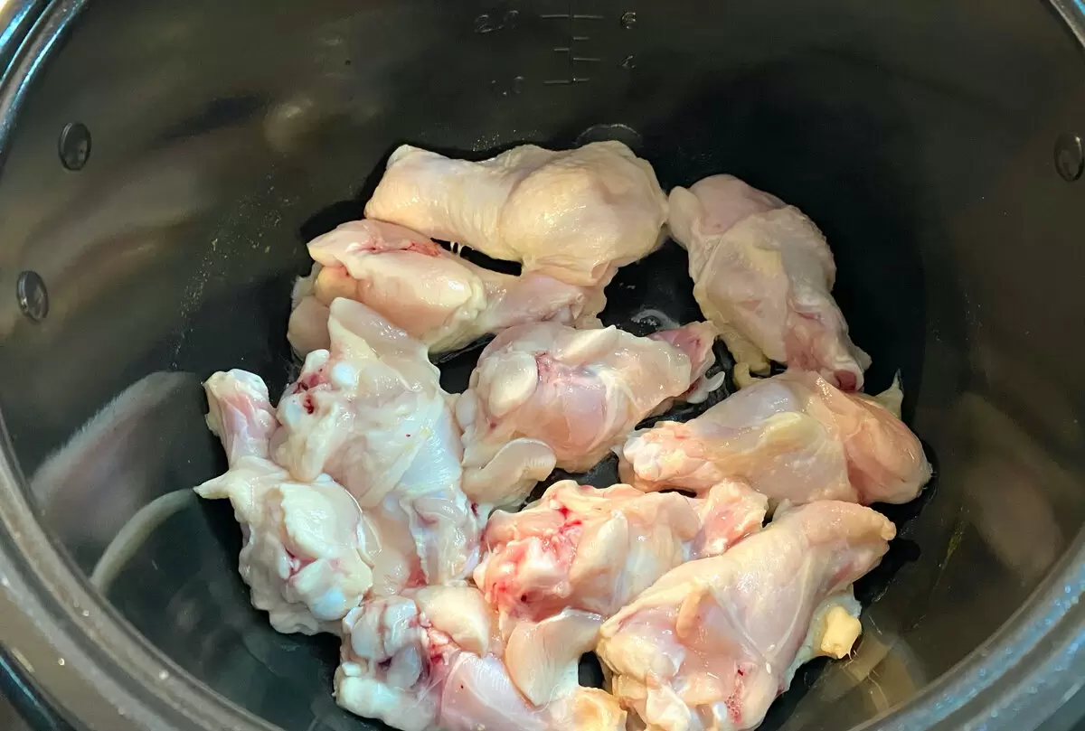 - Подготовка: Активировать режим ЖАРКА на мультиварке и добавить немного сливочного масла. Куриные крылышки размещаются в чаше и обжариваются до золотистой корочки, что придаст им аппетитный вид.