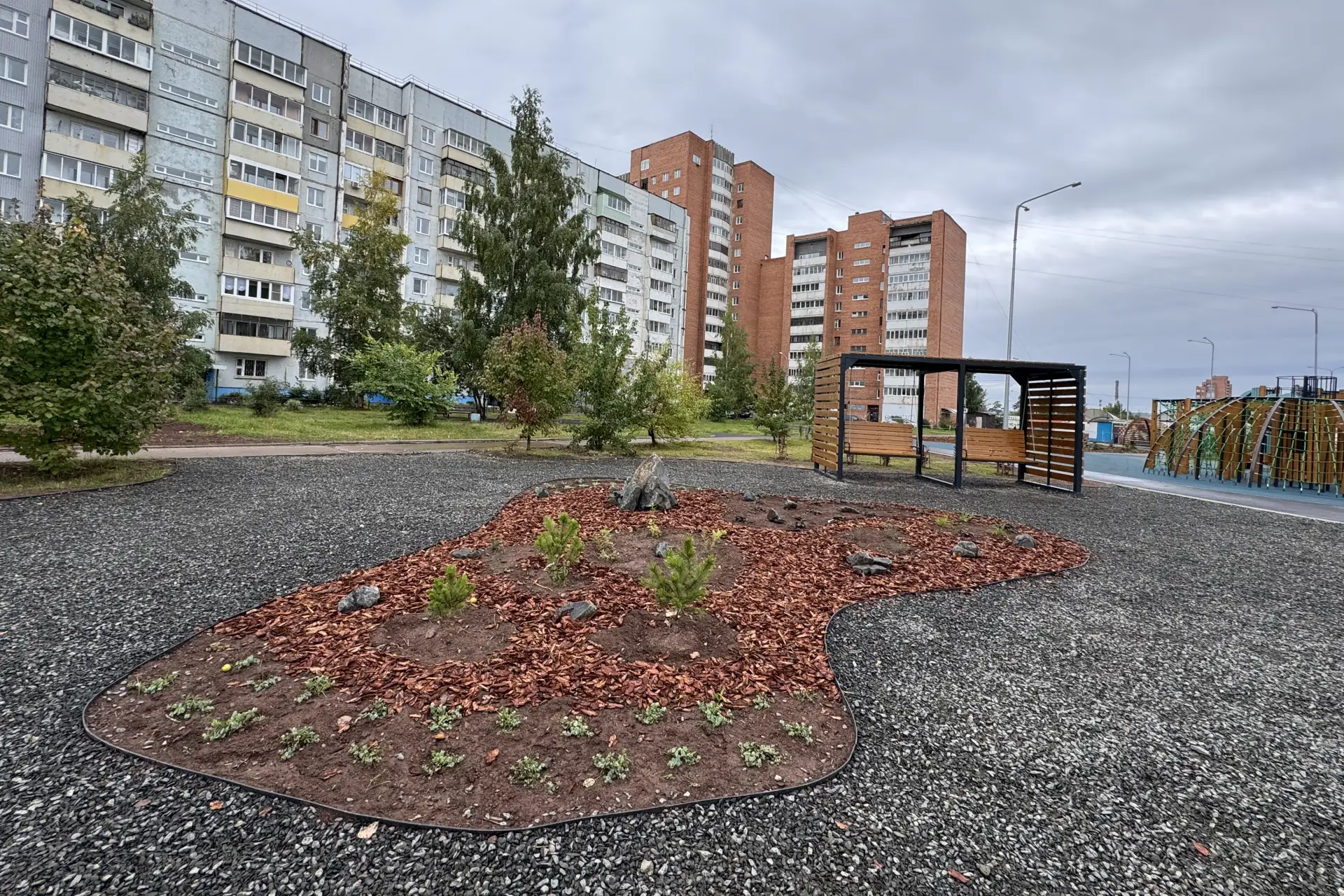 Территорию выбрали жители в ходе Всероссийского голосования за выбор объектов благоустройства в 2024 году. За неё проголосовали более 4,2 тысячи человек. В результате были сделаны две детские площадки с игровыми комплексами и развивающим комплексом с песочницей, установлены перголы-навесы с лавочками, садовые беседки, скамейки, качели. Провели освещение и озеленение. Для маломобильных групп населения обустроили пандусы.