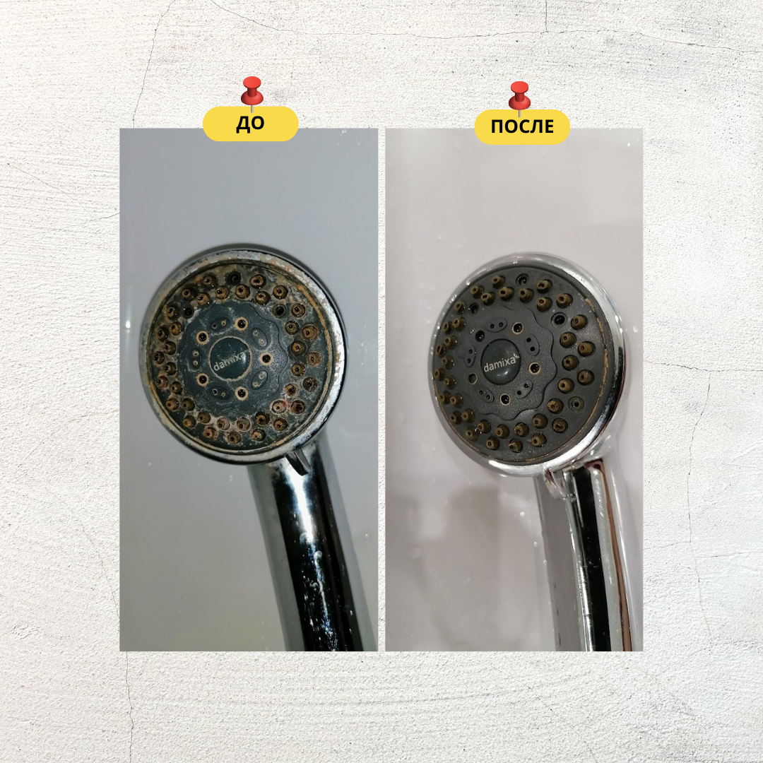 - Чистка кафеля и душевой: Нанесите кислото-водный раствор на кафель или стенки душевой и подождите, пока он подействует. Эффективно удаляет как мыльные налеты, так и известь.