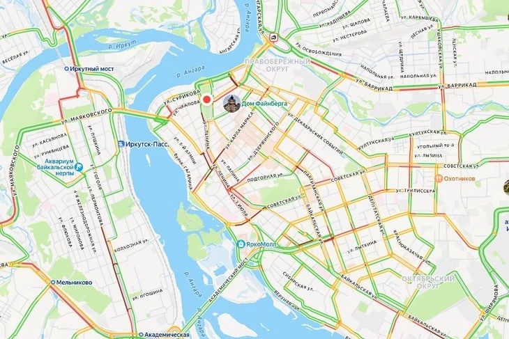 Пробка около четырех километров образовалась на улице Лермонтова. Она протянулась от Клары Цеткин почти до пересечения с Мелентьева. Также движение затруднено на Улан-Баторской, объездной микрорайонов Первомайского и Университетского, на подъездах к Академическому мосту.