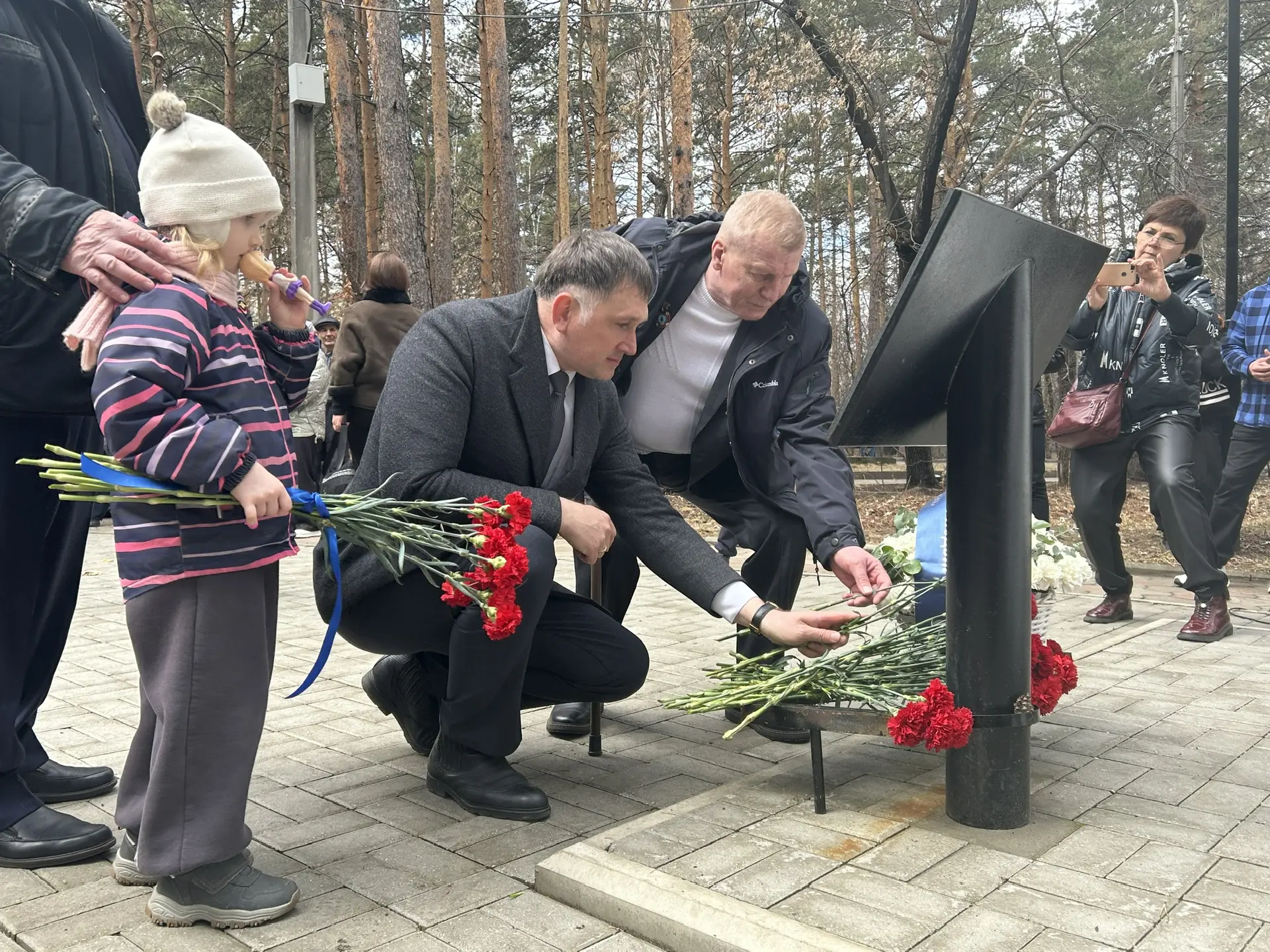 Участники акции почтили минутой молчания погибших и возложили цветы к памятному знаку ликвидаторам аварии на Чернобыльской АЭС. Напомним, он был установлен по инициативе «Союз – Чернобыль – Ангарск» и Сергея Петрова в 2024 году.