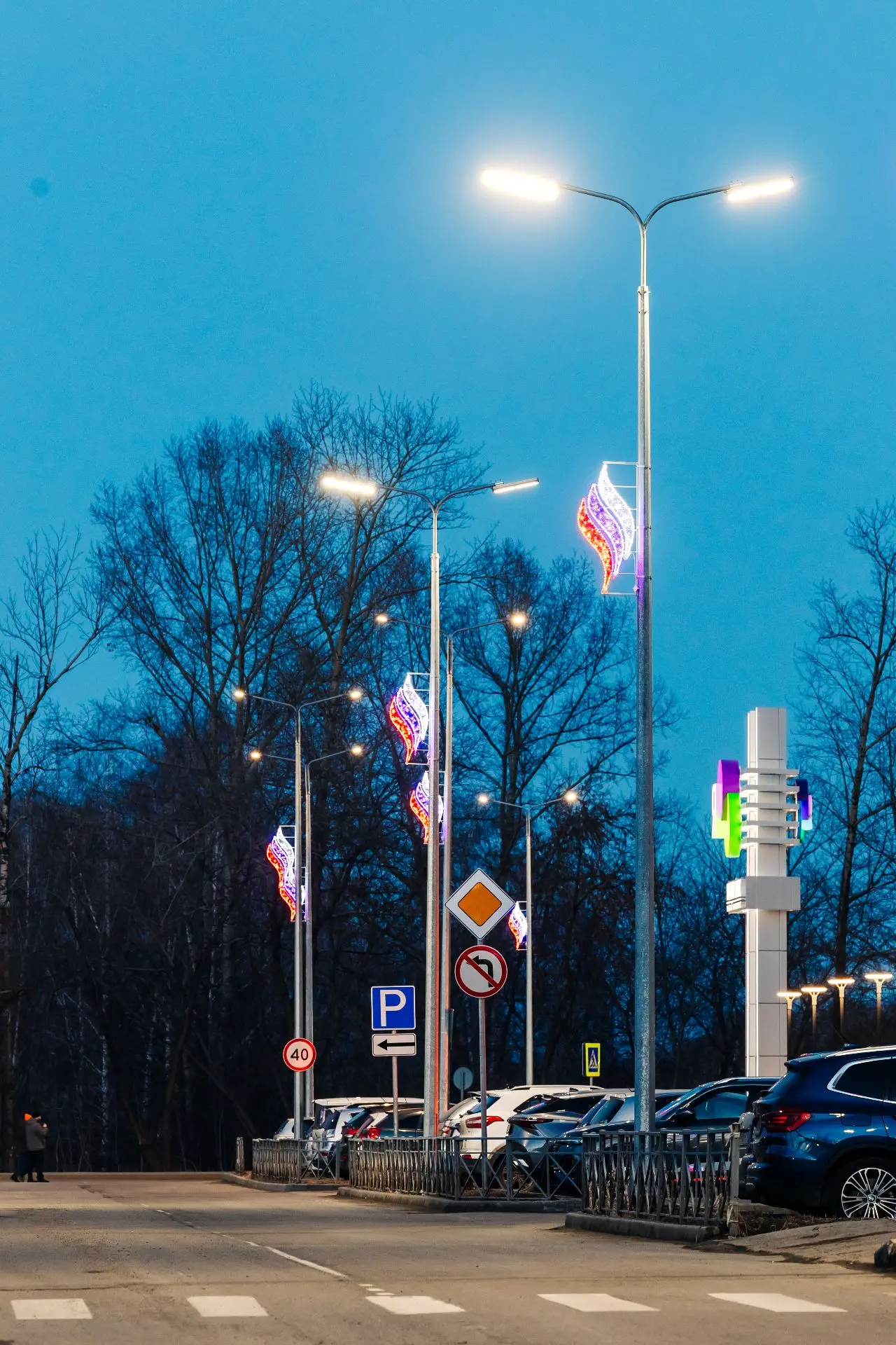 Почти полутораметровые «всполохи» (таково их заводское название) в цветах российского флага заработали в тестовом режиме и будут переведены в постоянный к майским праздникам на улице Якоби. По согласованию с администрацией города элементы уличного декора закупил и установил девелопер, который занимается развитием этого района.