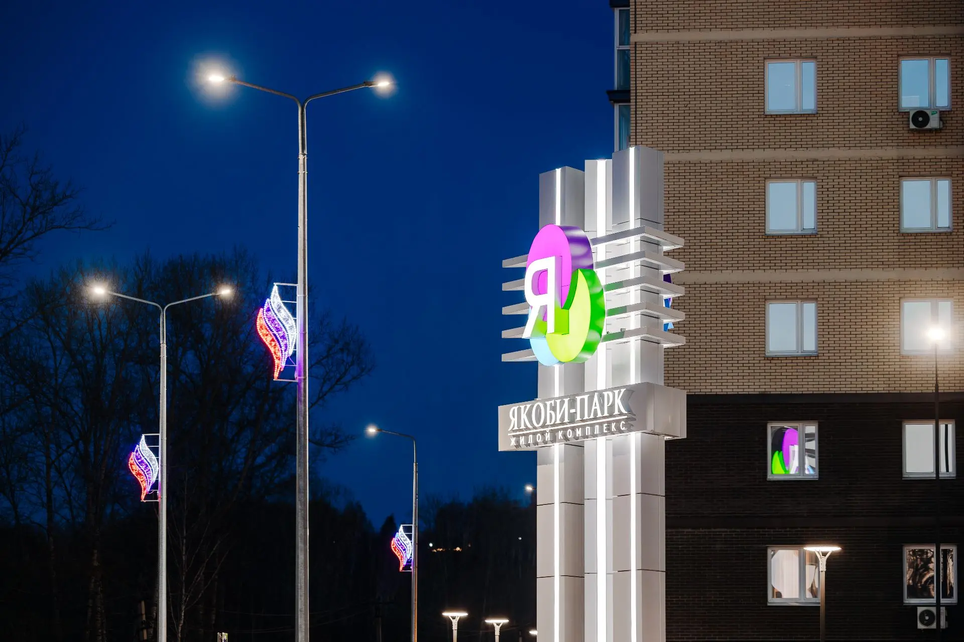 На улице Якоби девелопер смонтировал городскую иллюминацию