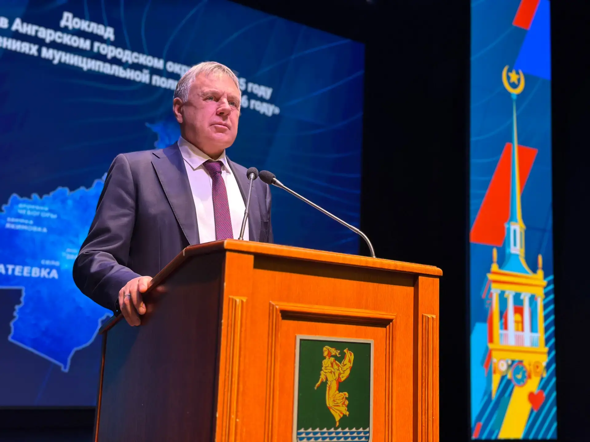 Церемония оглашения доклада мэра «О положении дел в Ангарском городском округе в 2025 году и основных направлениях муниципальной политики в 2026 году» состоялась сегодня, 28 апреля, в ДК «Нефтехимик». Это двенадцатый публичный доклад Сергея Петрова.