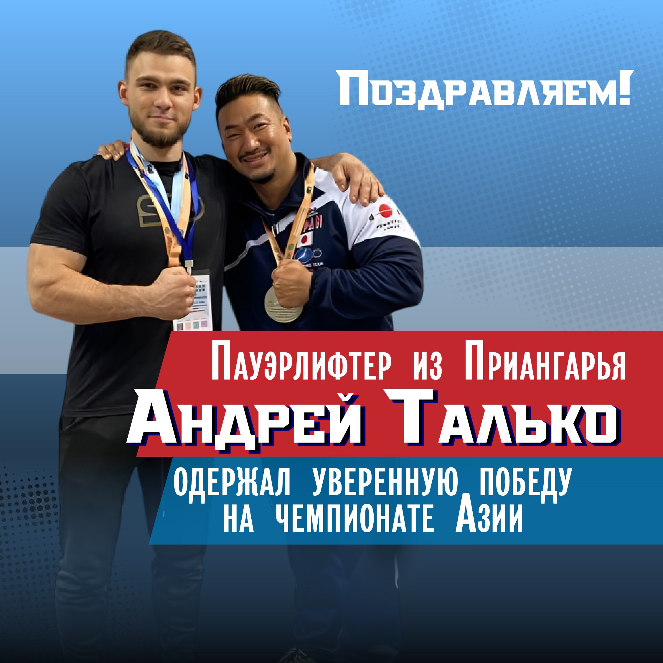 Иркутский спортсмен Андрей Талько одержал победу на чемпионате Азии по пауэрлифтингу в Гонконге.
