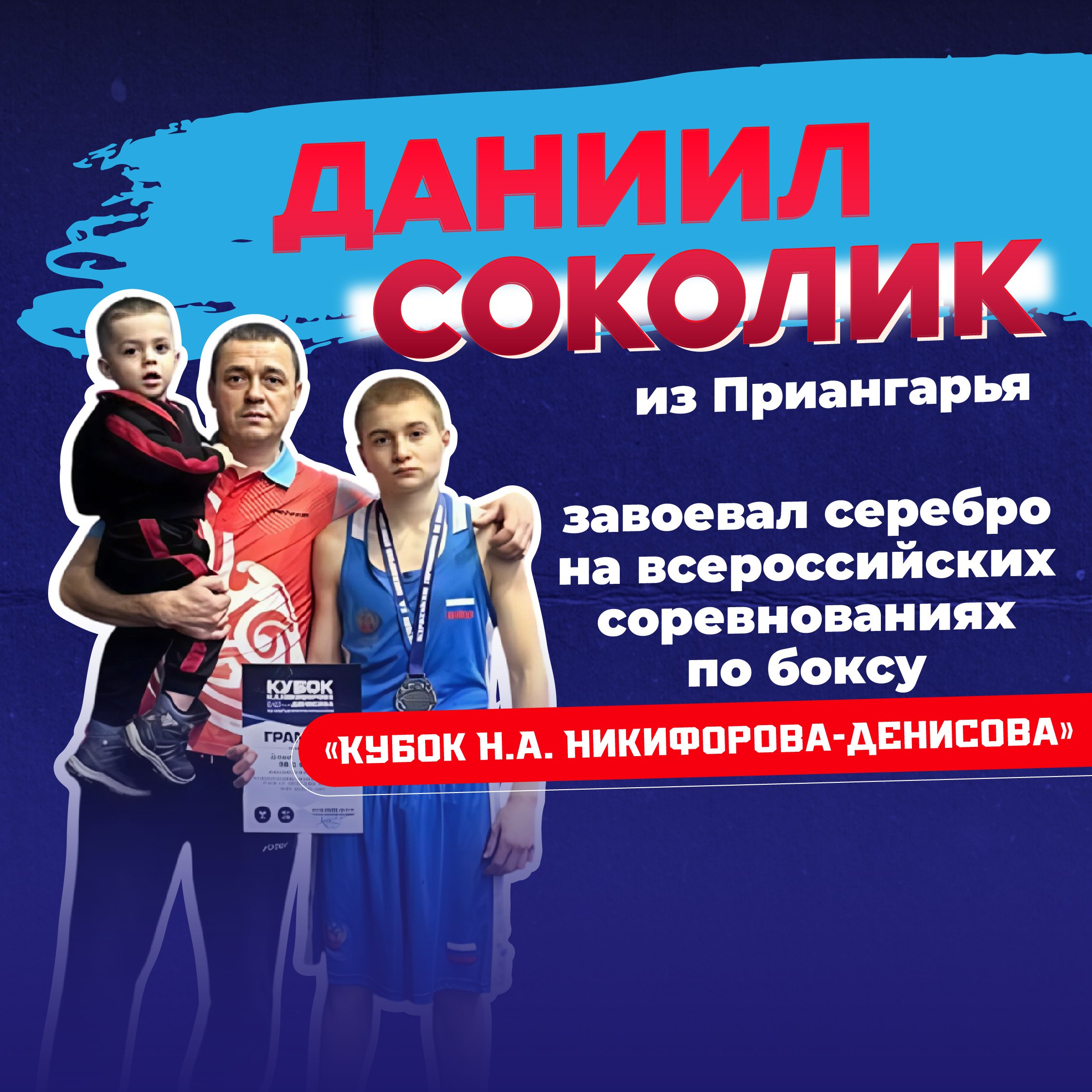 Наш земляк Даниил Соколик завоевал серебро на престижном турнире по боксу — «Кубке Н.А. Никифорова-Денисова». Он проходил с 9 по 16 ноября в Санкт-Петербурге, куда съехались 213 лучших молодых боксеров из 44 регионов страны.