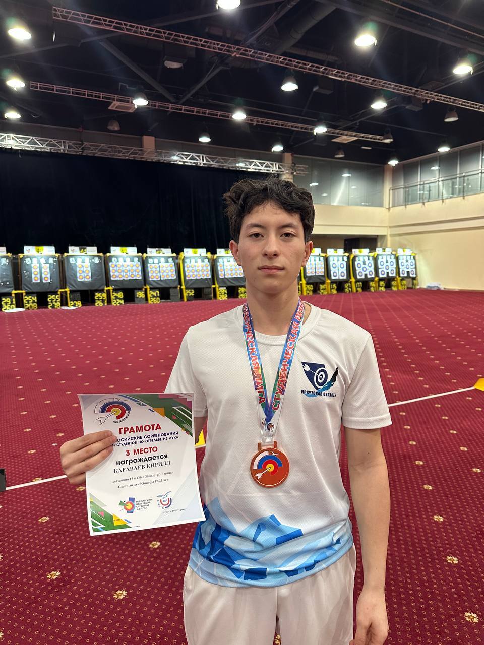 Мастер спорта России Кирилл Караваев выиграл бронзовую медаль в стрельбе из блочного лука среди юниоров 17-25 лет. Кирилл – студент ИГУ, стрельбой из лука занимается в областной спортивной школе олимпийского резерва «Тамир» имени И.И. Тыхреновой. Его тренирует Александр Бадрянов.
