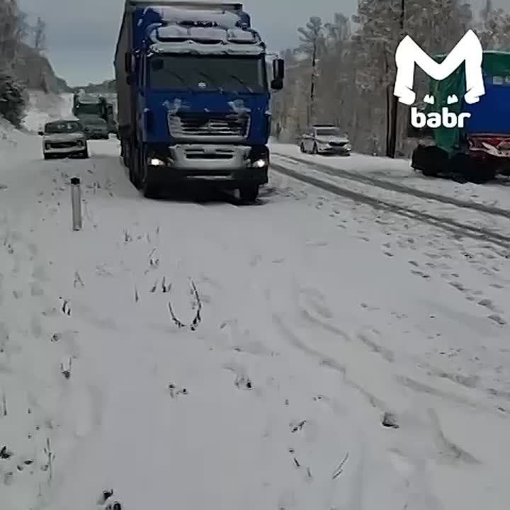 Авария произошла в районе Харика. Из-за гололеда большегрузы развернуло поперек дороги. На месте образовалась шестикилометровая пробка.