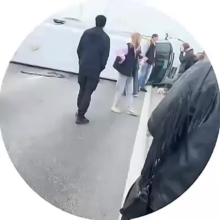 Одна из машин — ГАЗель — лежит на бокуПо предварительным данным, автобус опрокинулся после столкновения с Toyota Caldina и BMW без номеров.В результате ДТП пострадали семь человек. На месте работает бригада скорой помощи и пожарные. Движение...